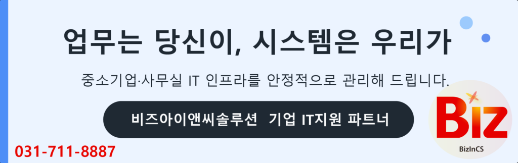 – 비즈아이앤씨솔루션은 정보통신기술(ICT)을 바탕으로 기업의 디지털 환경 구축과 스마트한 업무 혁신을 지원하는 솔루션 기업입니다.
